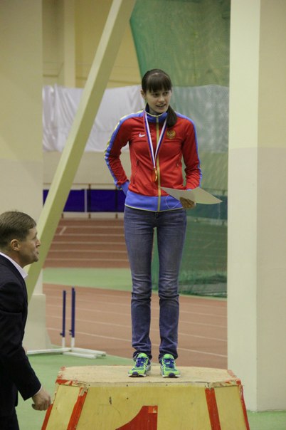 Elena Lashmanova on the higher step of the podium