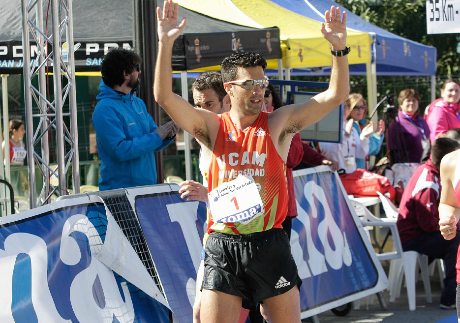 Para el actual campeón de Europa era una aventura arriesgada su debut en una distancia superior como los 35km marcha, dada todavía su juventud y además ante su público, pero Miguel Ángel López si algo tiene es coraje y valentía, la misma que le llevó a lograr el título europeo el pasado año en Zúrich y la misma que ha destilado por el circuito de esta localidad murciana durante la mañana de hoy. Pero el murciano no e amilanó y logró vencer con un registro de 2:32:56, dejando muy lejos a sus rivales, donde Marc Tur, que lograra el título el pasado año muy cerca de aquí, en Murcia, fue segundo en el podio con 2:39:53 y otro murciano, Benjamín Sánchez, tercero con 2:40:38.