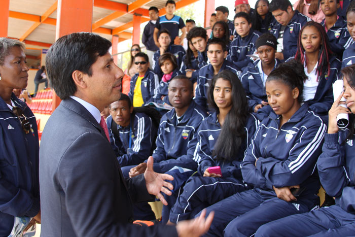 Jefferson Perez assieme agli atleti dell'Ecuador