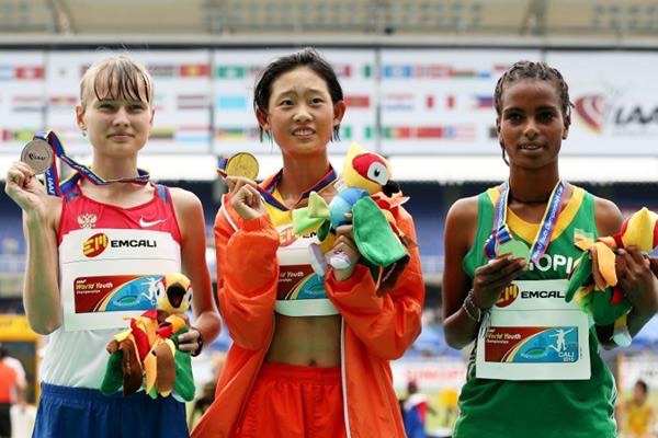 Il podio dei 5.000m track walk allieve con la sorpresa Etiope (by Getty Images)