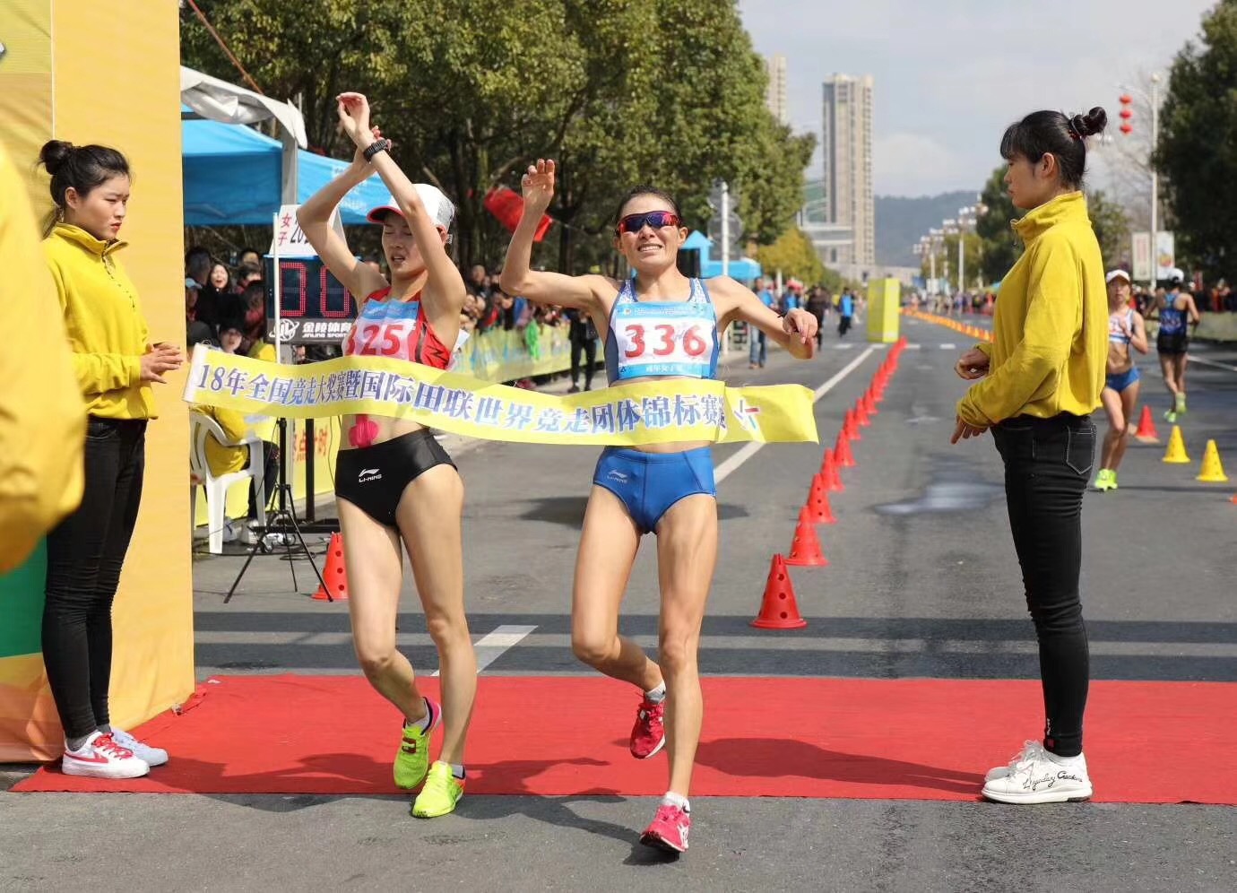 Intanto, il duo di testa passa ai 15 km. in 1:05:52 (21:33). La tibetana Qieyang prova a incrementare il ritmo e per circa 3 km. marcia attorno ai 4:15 al km. Yang Jiayu non molla di un centimetro e così Qieyang decide di mettersi alle sue spalle. Il ritmo cala immediatamente (4:25 circa) in attesa dello sprint finale. Volata che sembra risolversi a favore di Qieyang che ai 100 metri guadagna una decina di metri. La campionessa del mondo però non molla e quasi sul traguardo, per poco, non beffa la tibetana. Ultimi 5 km. marciati in 21:44. (ultimo km. 4:10).