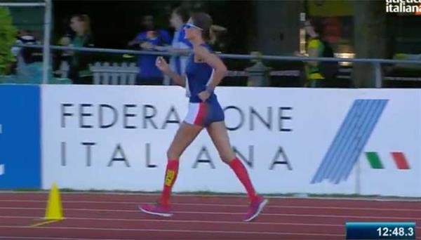 Fino quasi ai 4.000m le due atlete marciano spalla a spalla, poi Diana Cacciotti viene fermata dalla giuria e squalificata.