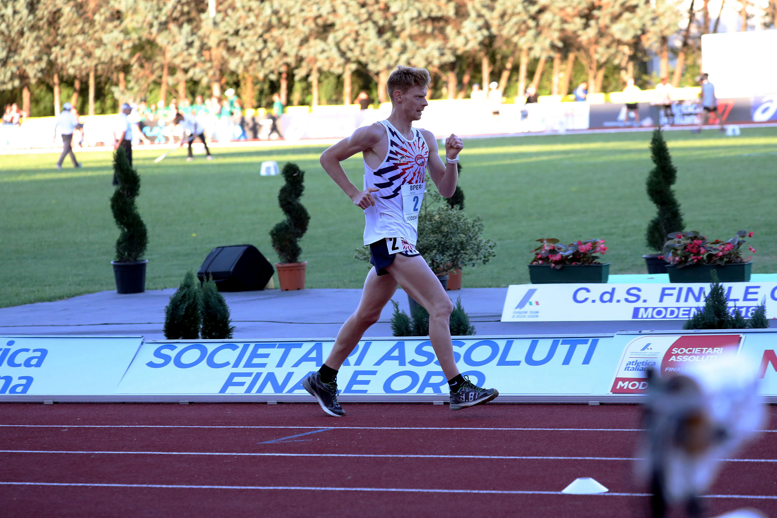 Il suo confronto a distanza con Leonardo Dei Tos che gareggiava a Modena lo vede dietro a quest’ultimo che di passaggio ai 5.000m ha ottenuto il tempo di 20:10.3.