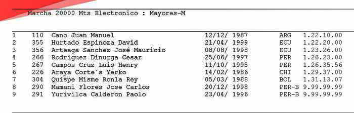 Le graduatorie 2018 (primi 20 atleti) dei Paesi Iberoamericani